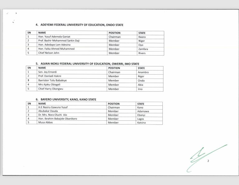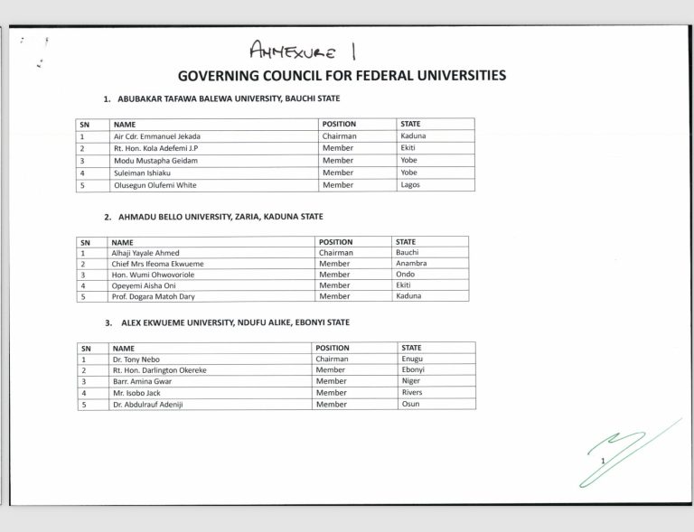 Contained in a statement on friday by Nnamdi Mbaerion, the Permanent Secretary, General Services, Office of the Secretary to the Government of the Federation, President Bola Ahmed Tinubu has approved the appointment of a reviewed list of Governing Councils and Boards of federal universities, polytechnics, and colleges of education.